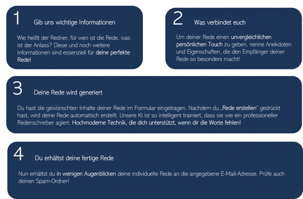 Für Hochzeiten, Geburtstage & mehr. Deine Rede. Persönlich. In 3 Minuten.